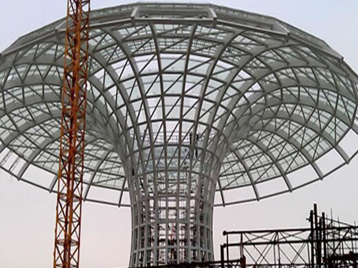 二、球形网架结构因其结构新颖,受力合理,自重轻、用钢量低等优点。如大型体育场馆球形公主岭螺栓球网架、公共场馆球形网架、电厂公主岭螺栓球网架、水泥工业球形网架、仓储物流球形网架、公主岭干煤棚工业球形网架、公主岭收费站公主岭加油站球形网架、展览中心、影剧院、商场、航站楼、候车厅、工厂公主岭车间、仓库、电视塔等球形螺栓球节点网架。国内球形网架结构主要分为:公主岭焊接球节点网架及螺栓球节点网架两种。螺栓球节点网架其构件工厂内加工量较大,现场安装便捷,适用于现场工期紧,公主岭施工条件、用电量受制约,网架形状复杂、公主岭杆件定位困难的异形结构。螺栓球节点球形网架系统基本由公主岭杆件、螺栓球、支撑支座等组成。按照节点形式可分为交叉公主岭桁架体系、四角锥体系、三角锥体系等。支撑方式多为固定支座支撑。对于大面积、大跨度及有特殊受力或伸缩要求的网架结构可采用橡胶支座、滑移支座、球铰支座等支撑形式,以满足结构自身的受力稳定、均衡,便于内力释放等设计要求。